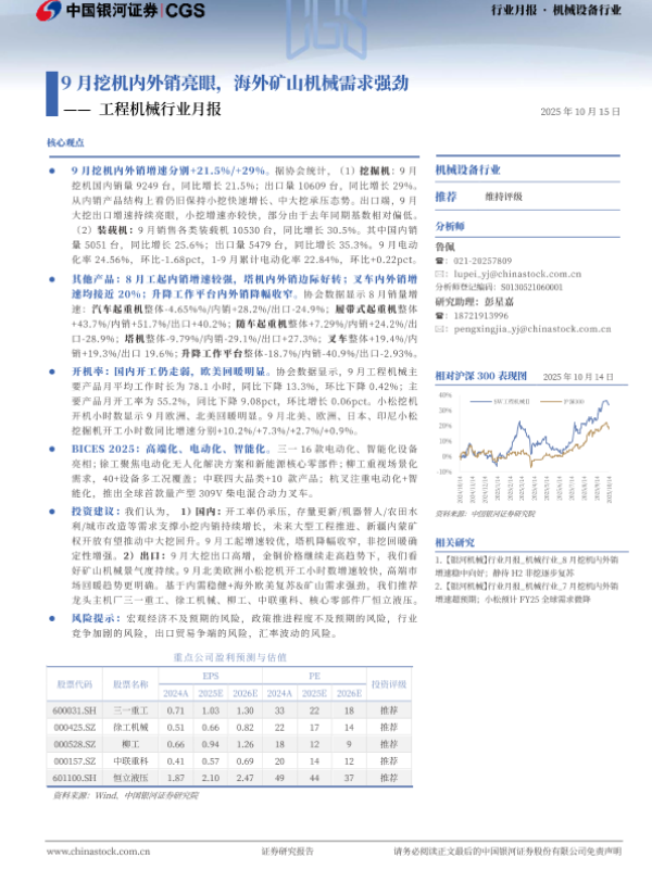 【银河证券】【202510】9月挖机内外销亮眼,海外矿山机械需求强劲——工程机械行业月报-19页