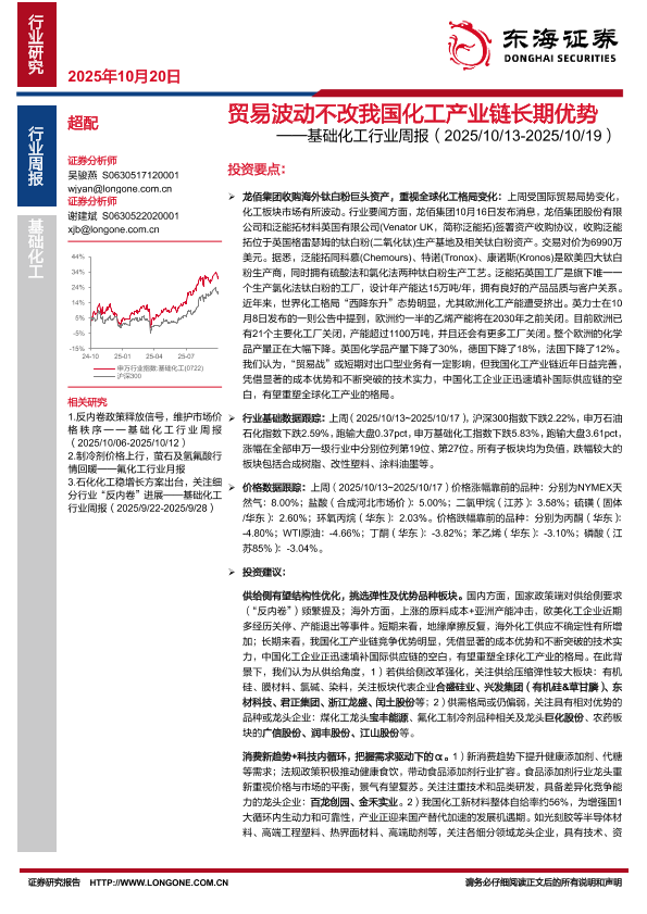 【东海证券】【202510】贸易波动不改我国化工产业链长期优势——基础化工行业周报(2025/10/13-2025/10/19)-20页