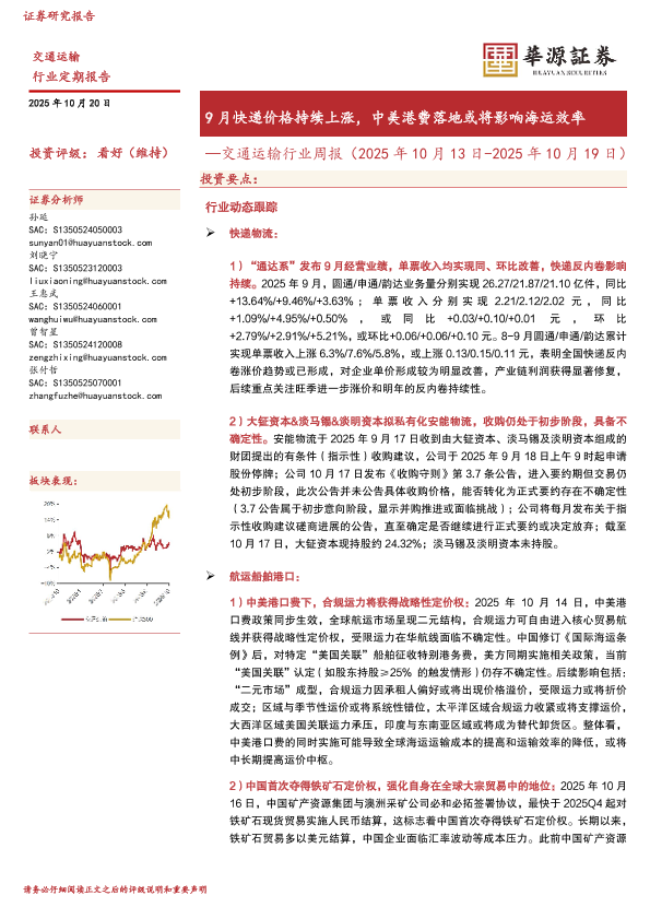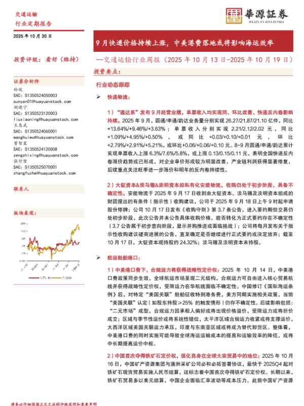 【华源证券】【202510】9月快递价格持续上涨,中美港费落地或将影响海运效率-17页