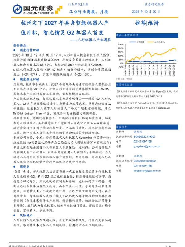 【国元证券】【202510】定下 2027年具身智能机器人产值目标,智元精灵 G2机器人首发——人形机器人产业周报-9页