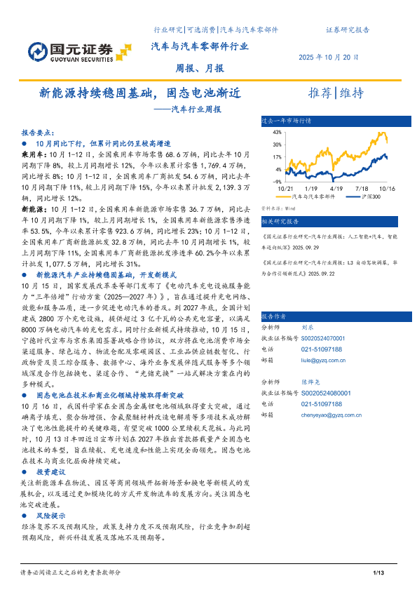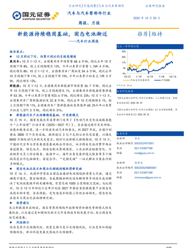 【国元证券】【202510】新能源持续稳固基础,固态电池渐近——汽车行业周报-13页