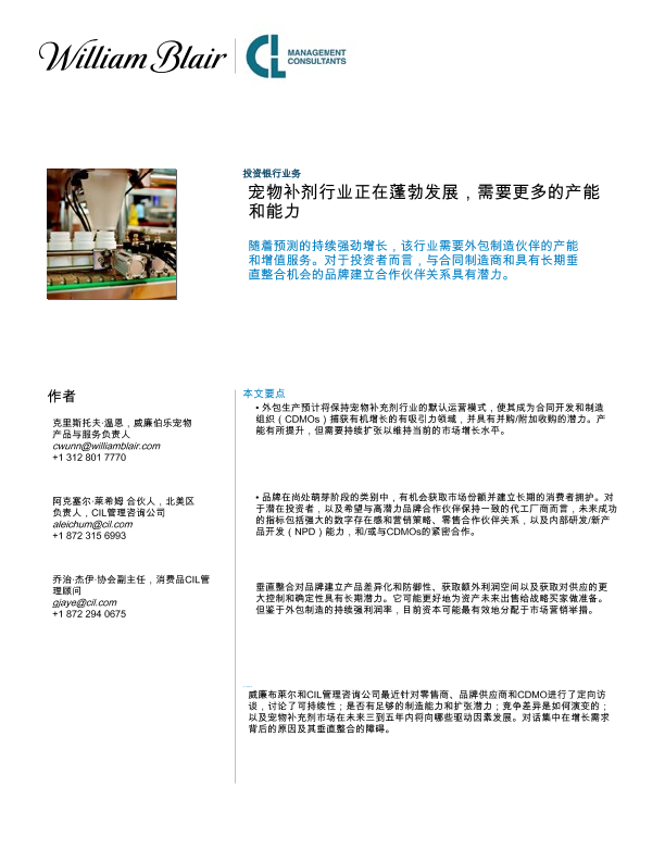 【威廉伯乐&CIL管理咨询公司】【2023】宠物补剂行业正在蓬勃发展,需要更多的产能和能力-5页