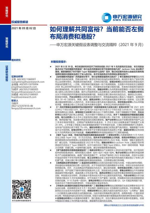 【申万宏源】【20210902】关键假设表调整与交流精粹(2021年9月):如何理解共同富裕?当前能否左侧布局消费和港股?-34页
