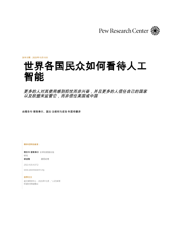 【皮尤研究中心】【2025】世界各国民众如何看待人工智能-56页