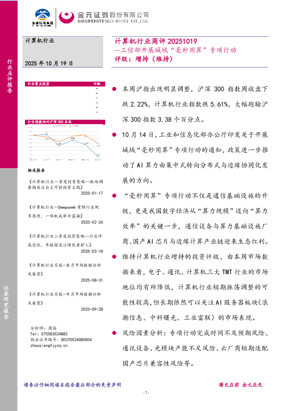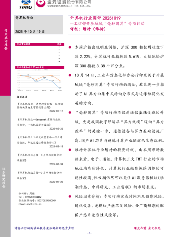 【金元证券】【202510】计算机行业周评 20251019—工信部开展城域“毫秒用算”专项行动-12页