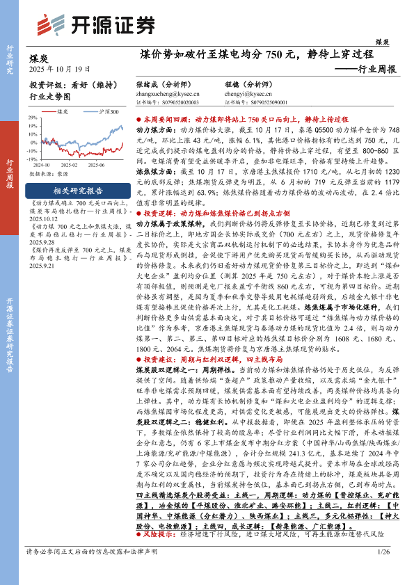 【开源证券】【202510】动力煤或确立 700元关口而向上, 煤炭布局稳扎稳打—行业周报-26页