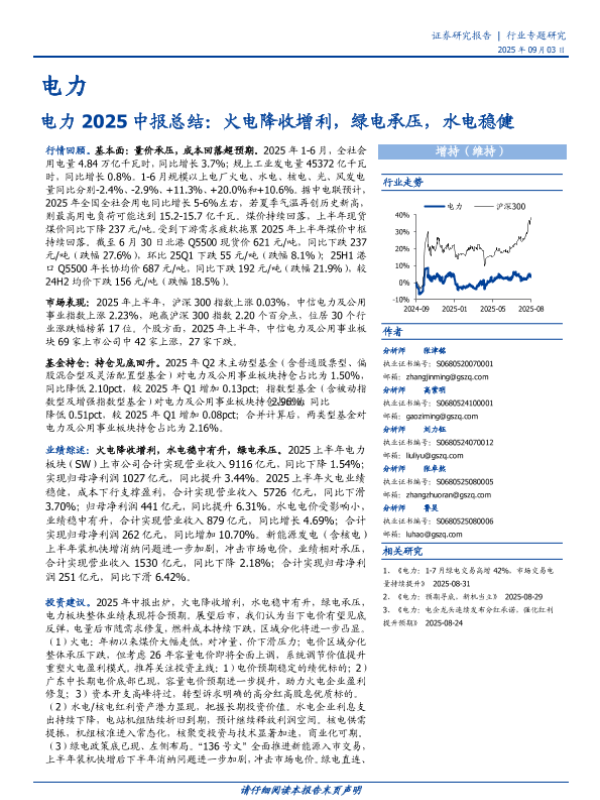 【国盛证券】【202509】电力行业2025中报总结:火电降收增利,绿电承压,水电稳健-17页