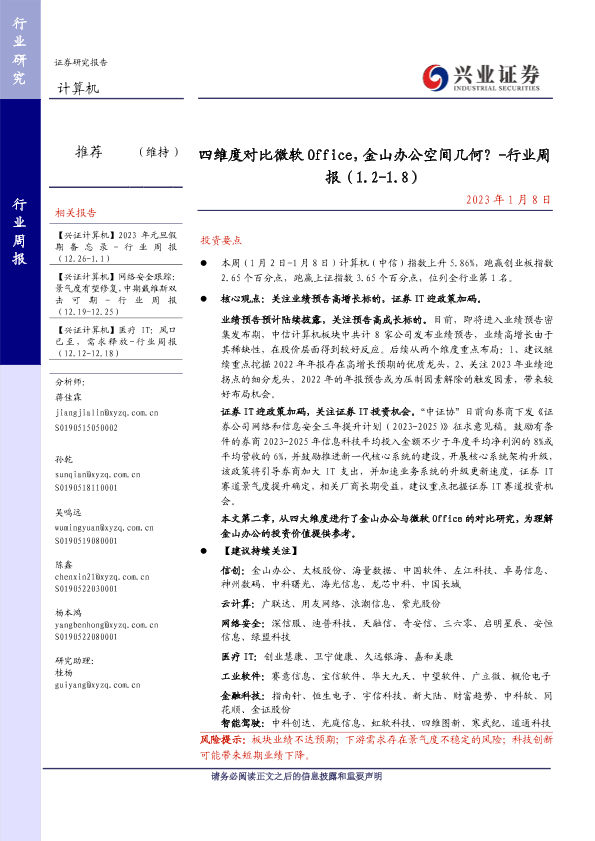 【兴业证券】【20230108】四维度对比微软 Office,金山办公空间几何?-行业周报(1.2-1.8)-23页