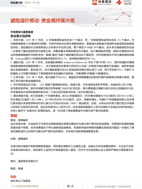 【华泰期货】【202510】贵金属月报_避险溢价推动_贵金属持续冲高-9页