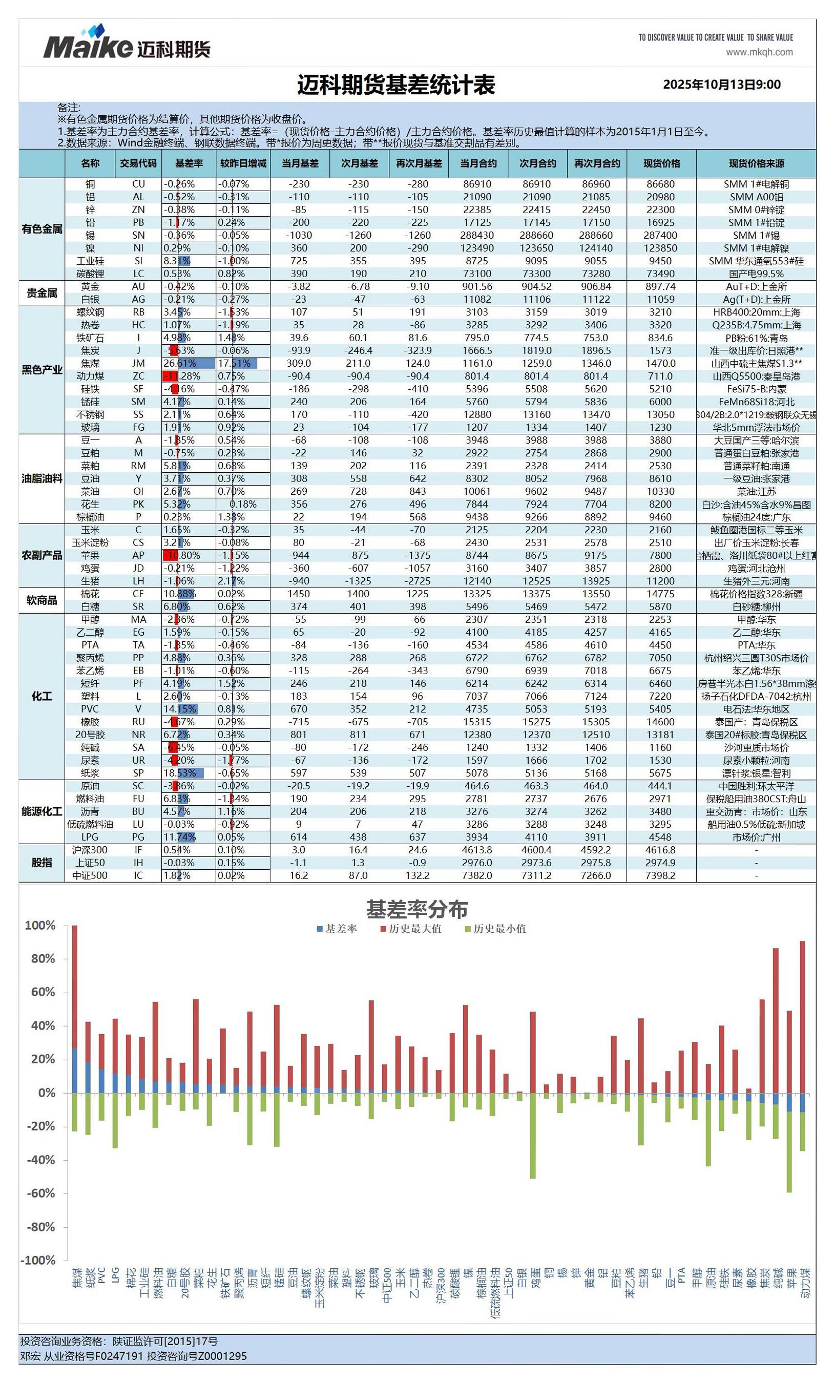 【迈科期货】【202510】迈科期货基差统计表-1页
