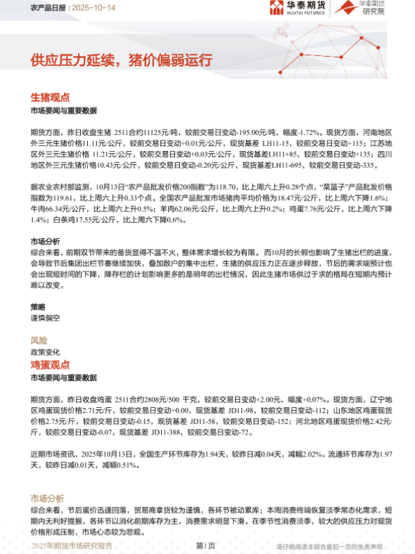 【华泰期货】【202510】农产品日报 | 2025-10-14-10页