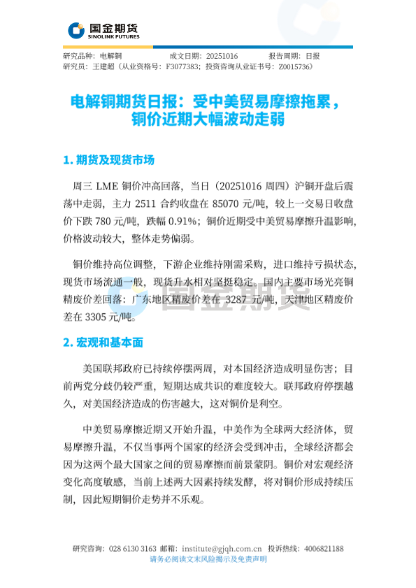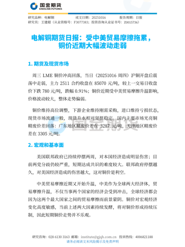 【国金期货】【202510】电解铜期货日报_受中美贸易摩擦拖累_铜价近期大幅波动走弱-4页