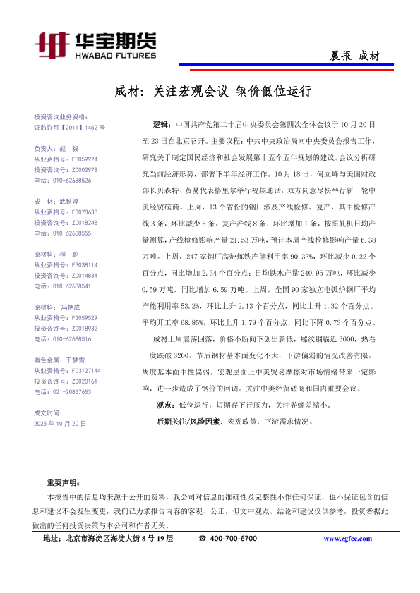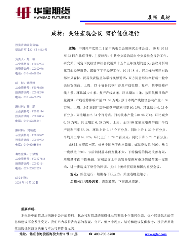 【华宝期货】【202510】成材_关注宏观会议_钢价低位运行-1页