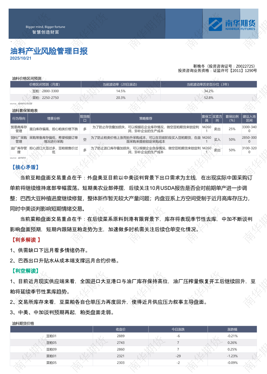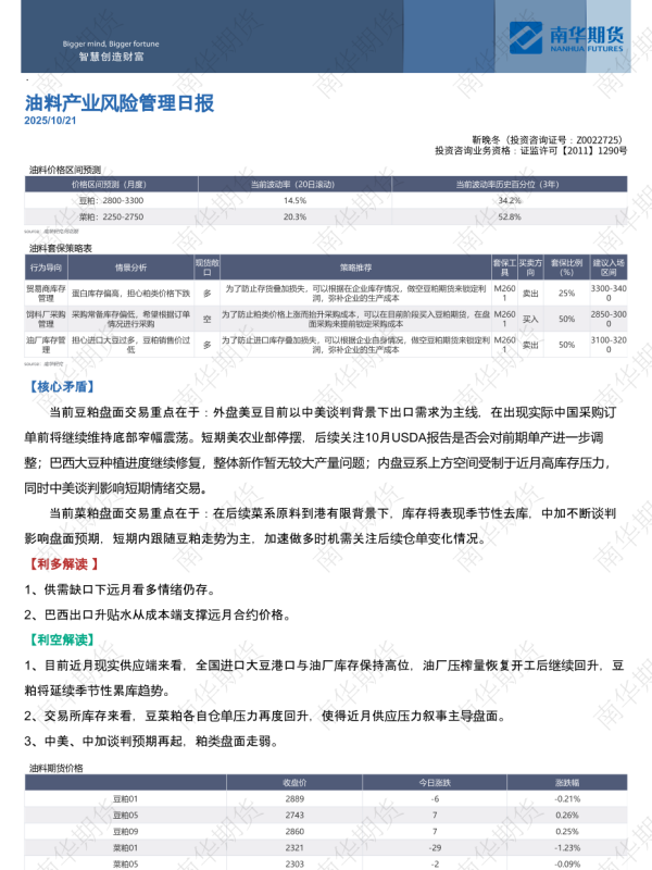 【南华研究】【202510】油料产业风险管理日报-2页