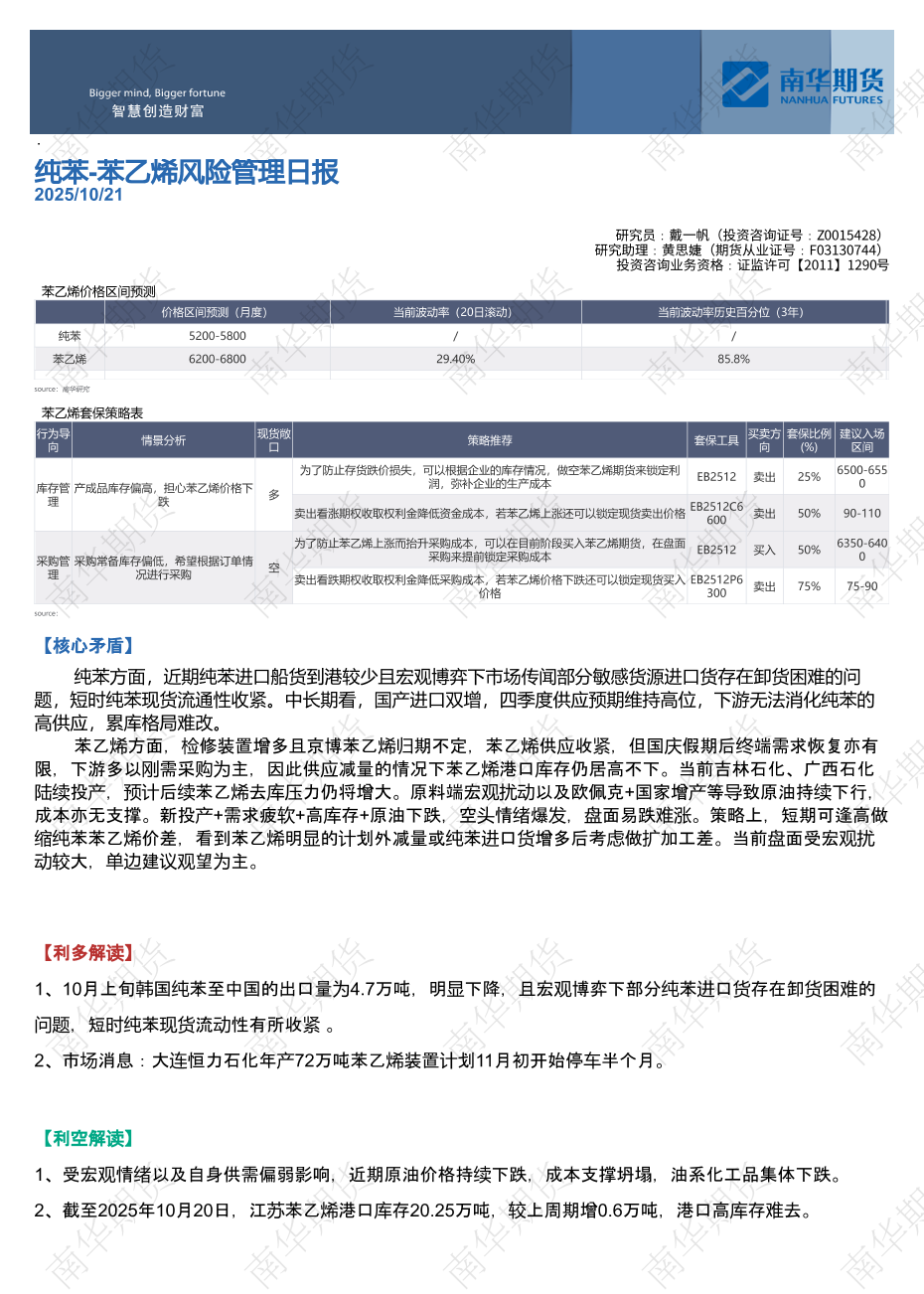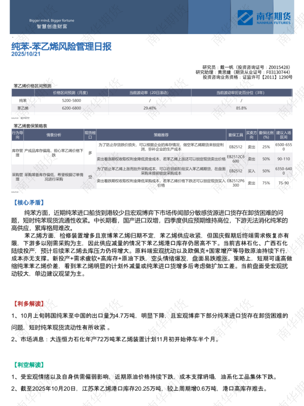 【南华研究】【202510】纯苯-苯乙烯风险管理日报-5页