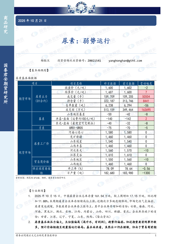 【国泰君安期货】【202510】尿素:弱势运行-3页