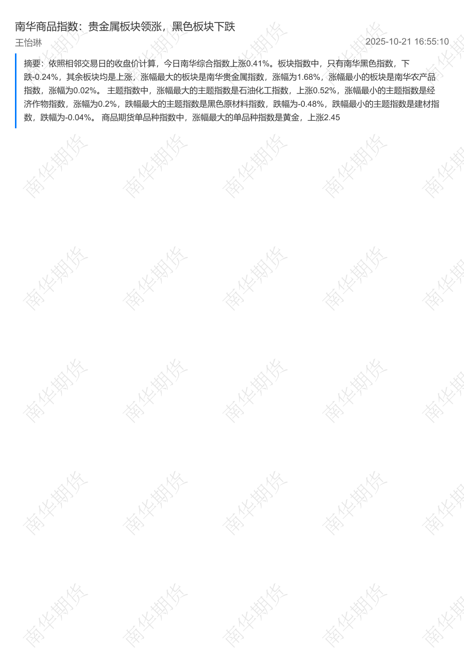 【南华期货】【202510】南华商品指数:贵金属板块领涨,黑色板块下跌-2页