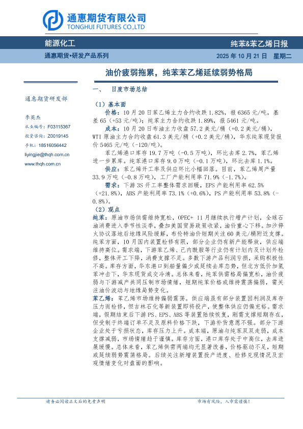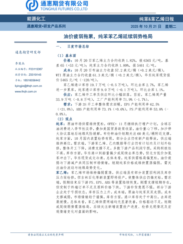 【通惠期货】【202510】能源化工 纯苯&苯乙烯日报-7页