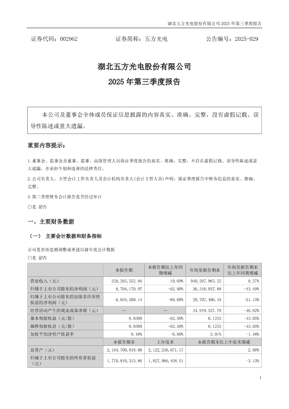 【湖北五方光电股份有限公司】【2025】2025年第三季度报告-11页
