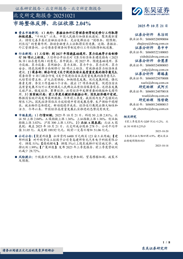 【东吴证券】【202510】市场整体反弹,北证收涨2.04%-8页