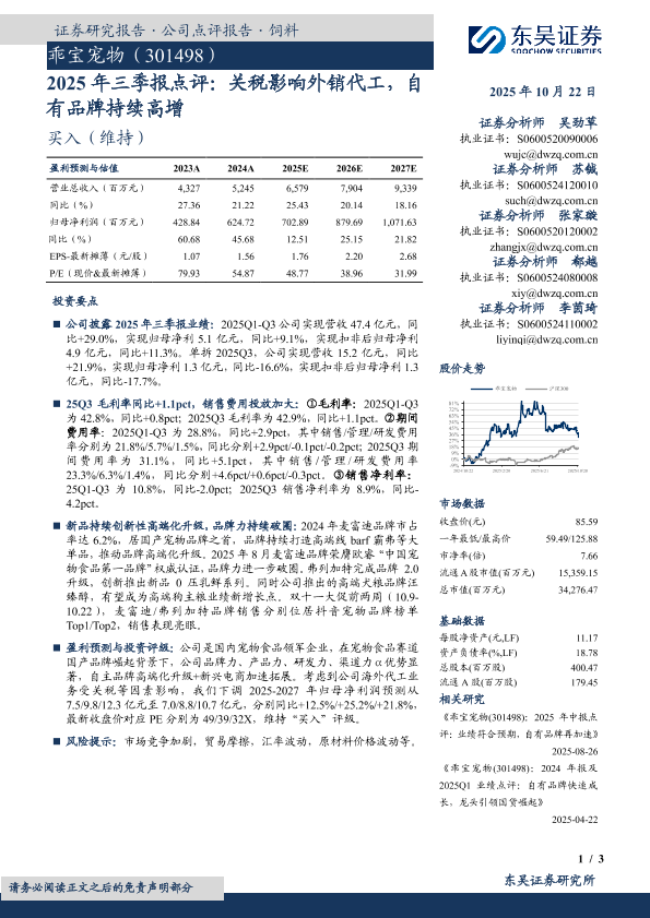 【东吴证券】【202510】2025年三季报点评:关税影响外销代工,自有品牌持续高增-3页