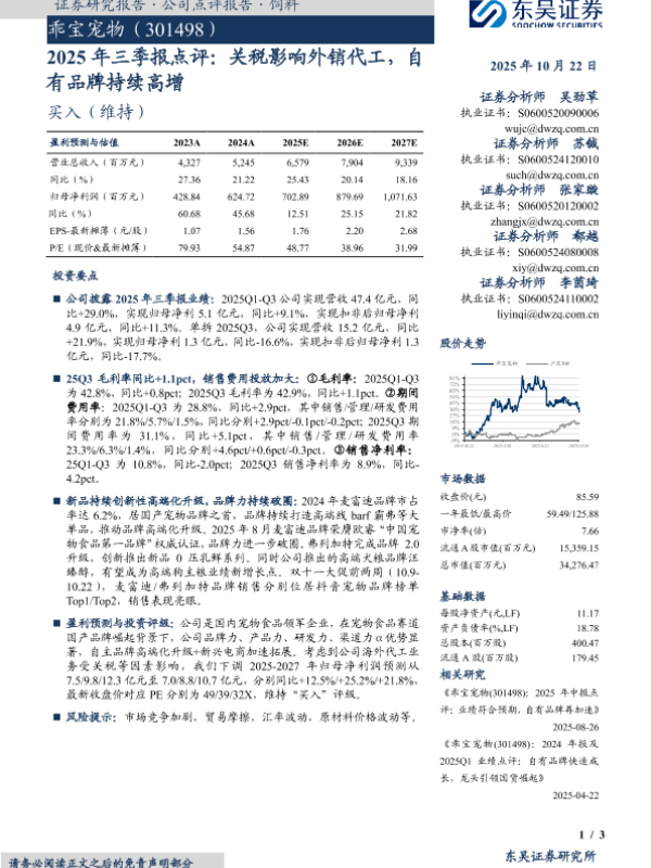 自有品牌 投资评级 财报分析 行业研究 宠物食品