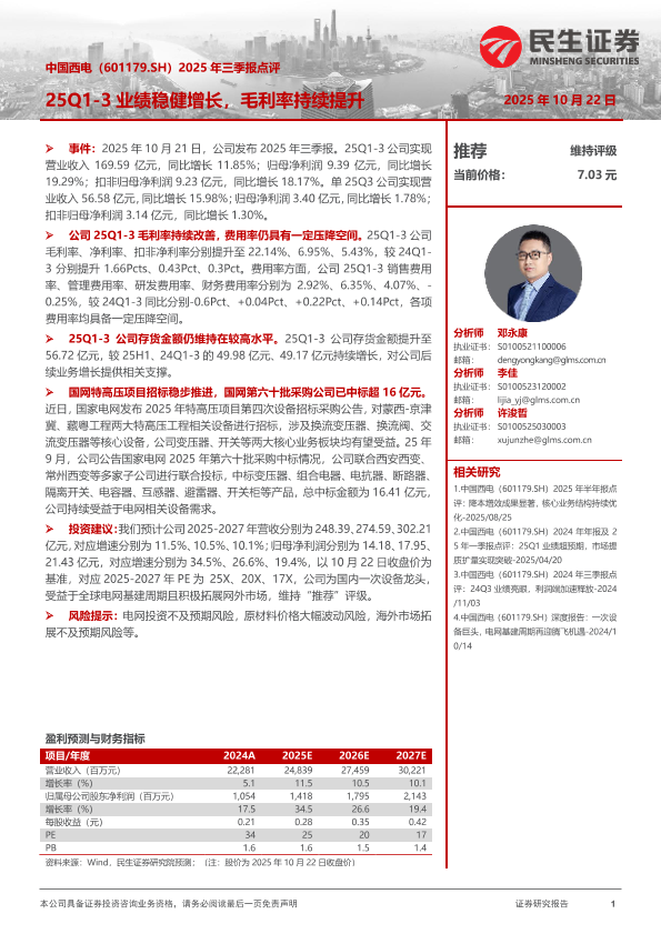 【民生证券】【202510】2025年三季报点评:25Q1-3业绩稳健增长,毛利率持续提升-3页