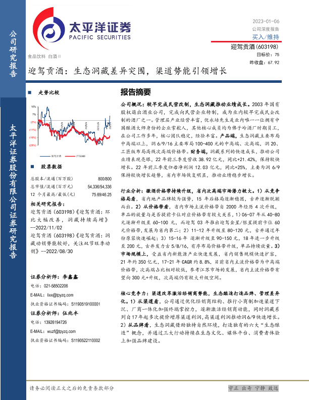 【太平洋证券】【20230106】迎驾贡酒:生态洞藏差异突围,渠道势能引领增长-26页