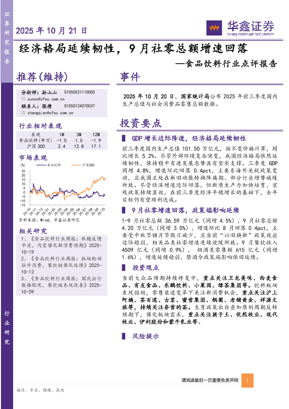 【华鑫证券】【202510】经济格局延续韧性,9月社零总额增速回落-4页