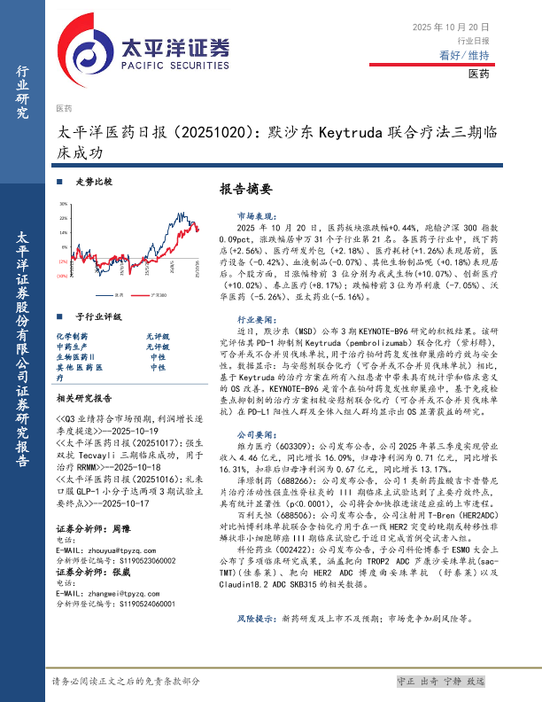 【太平洋证券】【202510】太平洋医药日报(20251020):默沙东 Keytruda联合疗法三期临床成功-3页