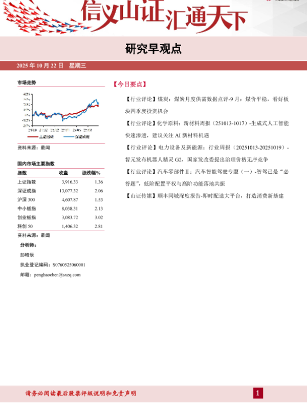 电力设备 新材料 煤炭 汽车零部件 即时配送