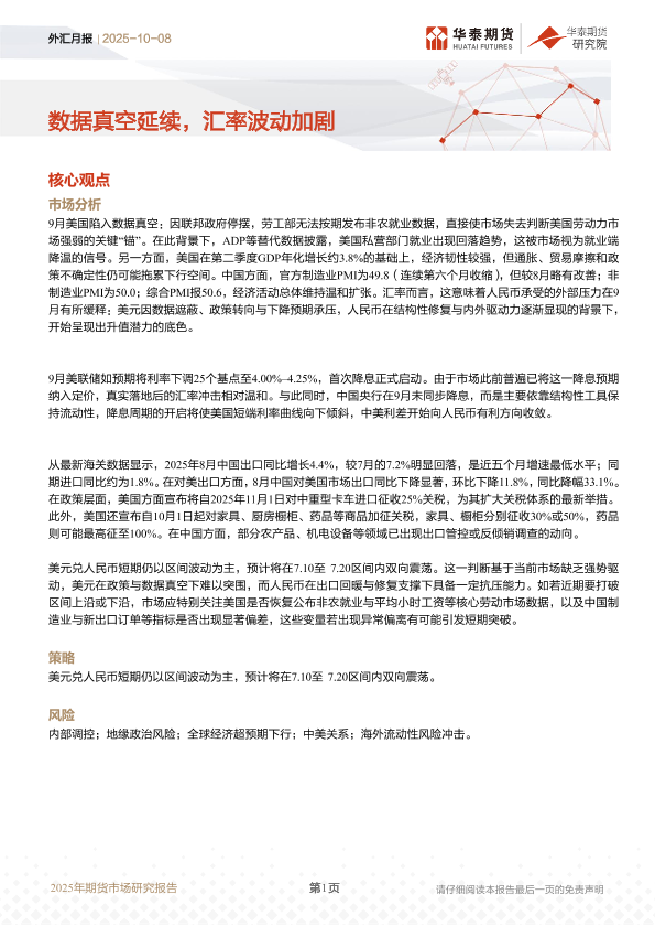 【华泰期货】【202510】外汇月报 | 数据真空延续,汇率波动加剧-9页