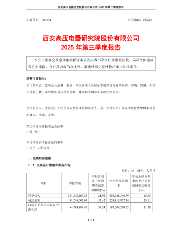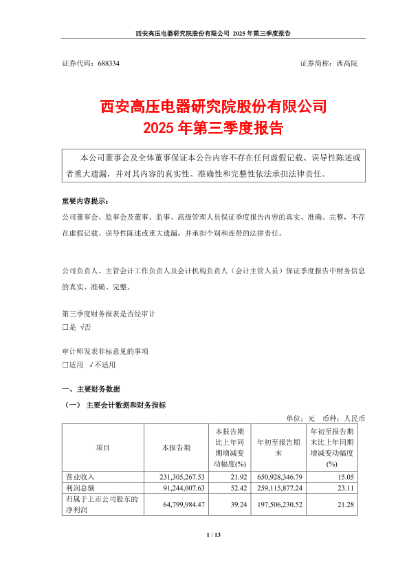 【西安高压电器研究院股份有限公司】【202510】西安高压电器研究院股份有限公司2025年第三季度报告-13页
