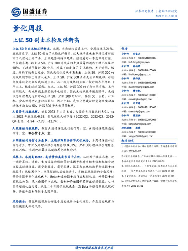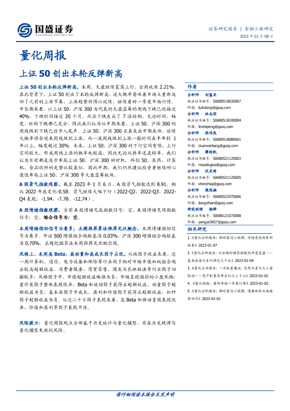 【国盛证券】【20230108】量化周报:上证50创出本轮反弹新高-24页