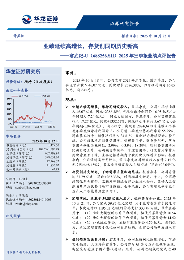 【华龙证券】【202510】业绩延续高增长,存货创同期历史新高——寒武纪-U(688256.SH)2025年三季报业绩点评报告-4页