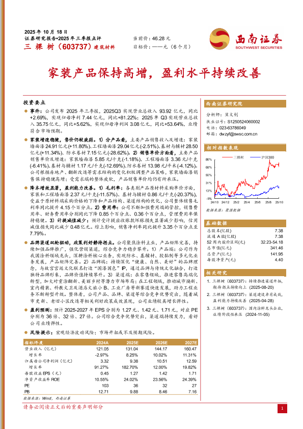 【西南证券】【2025】三棵树(603737):2025年三季报点评-5页