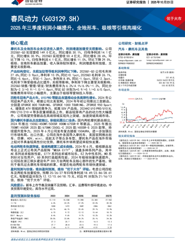 【国信证券】【202510】2025年三季度利润小幅提升,全地形车、极核等引领高端化-11页