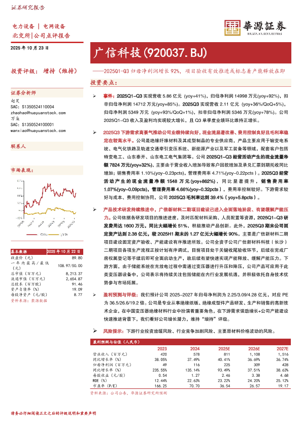 【华源证券】【202510】广信科技(920037.BJ)——2025Q1-Q3归母净利润增长 92%,项目验收有效推进或标志着产能释放在即-3页