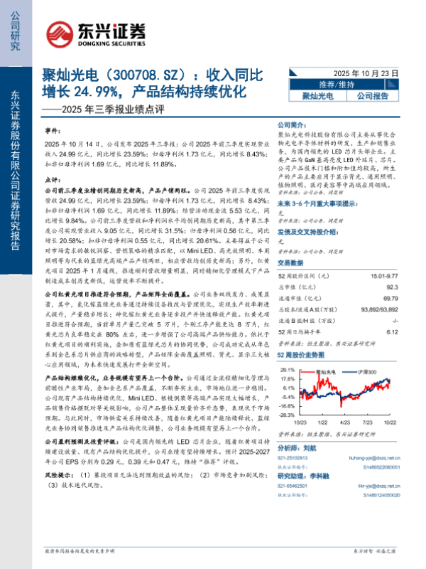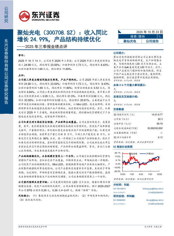 【东兴证券】【202510】聚灿光电(300708.SZ):收入同比增长24.99%,产品结构持续优化——2025年三季报业绩点评-6页