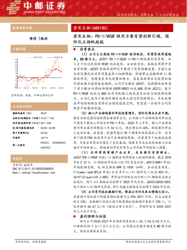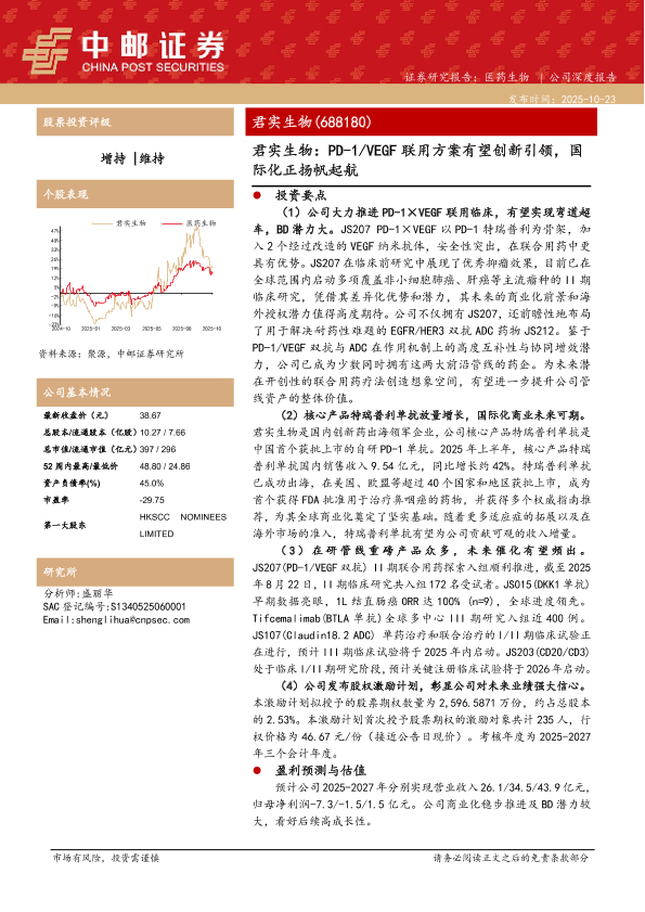 【中邮证券】【202510】君实生物:PD-1/VEGF联用方案有望创新引领,国际化正扬帆起航-28页