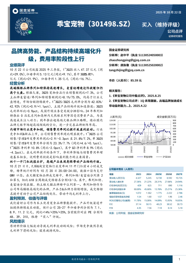 高端化升级 毛利率 销售费用率 宠物食品 盈利预测