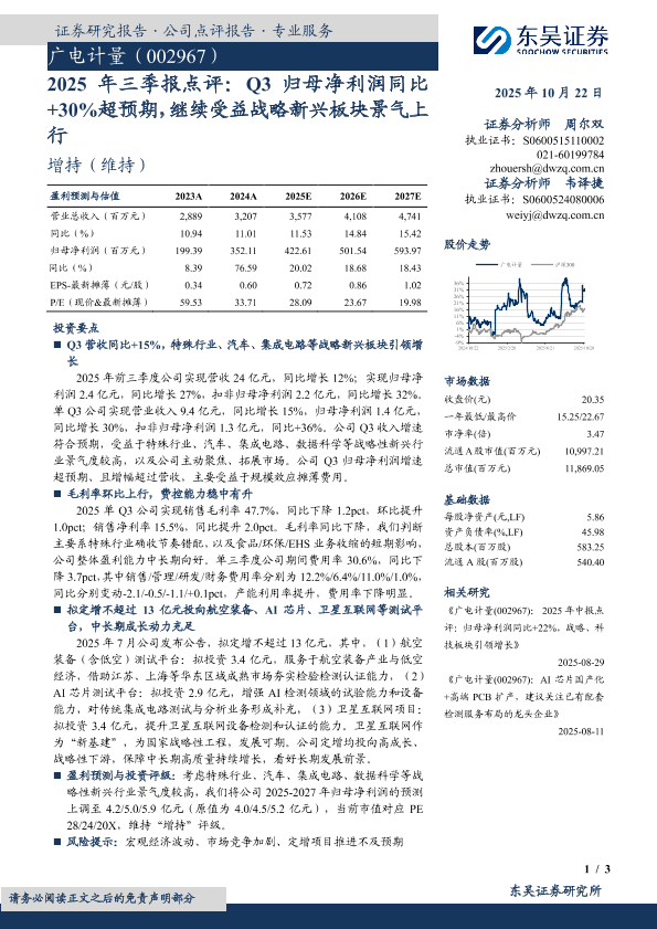 【东吴证券】【202510】2025年三季报点评:Q3归母净利润同比+30%超预期,继续受益战略新兴板块景气上行-3页