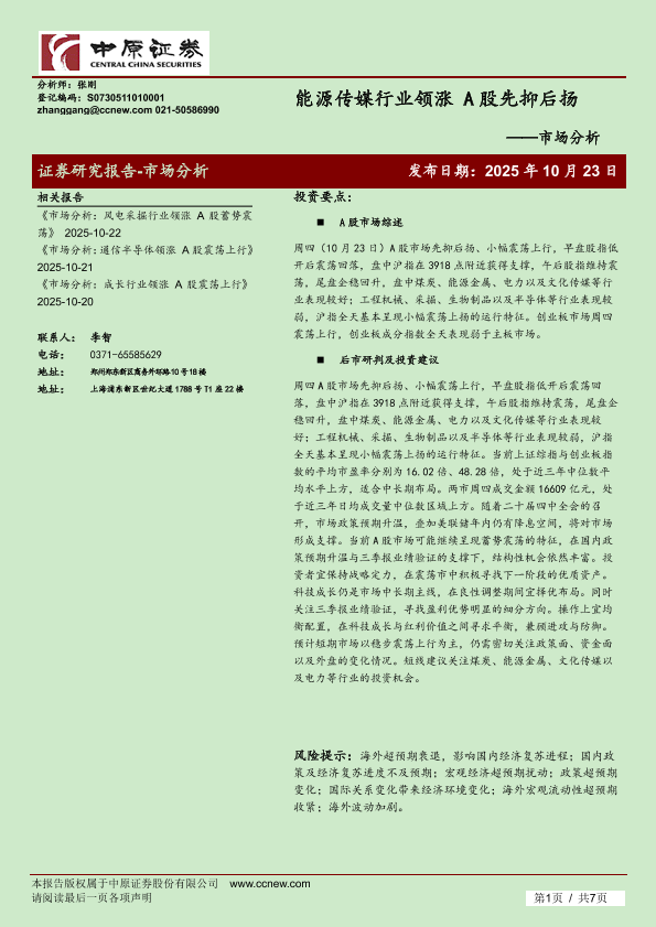 【中原证券】【202510】能源传媒行业领涨 A股先抑后扬-7页