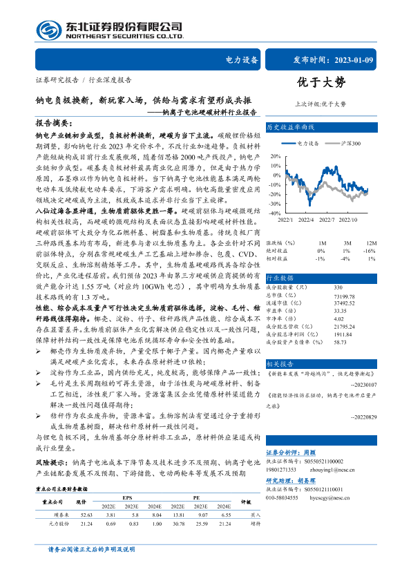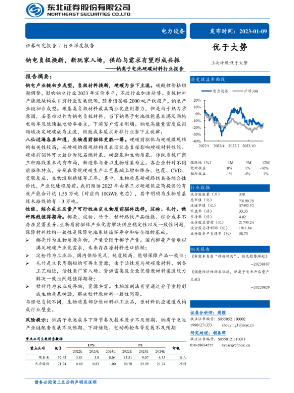 【东北证券】【20230109】钠电负极换新,新玩家入场,供给与需求有望形成共振——钠离子电池硬碳材料行业报告-24页