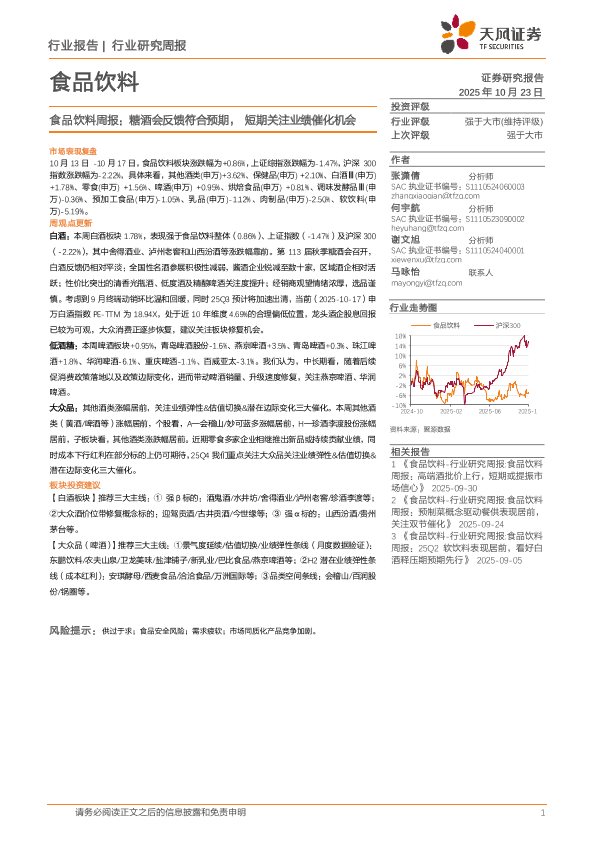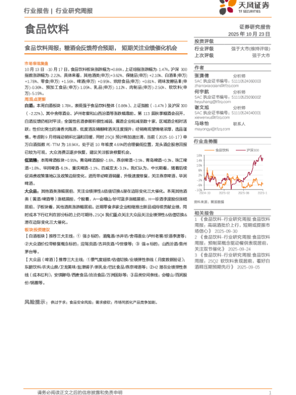 【天风证券】【202510】食品饮料行业周报:糖酒会反馈符合预期,短期关注业绩催化机会-17页