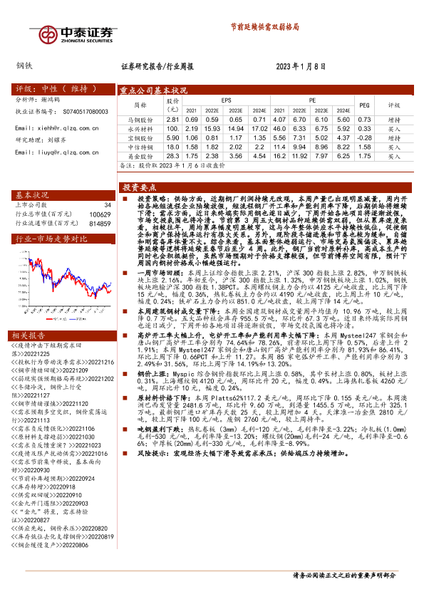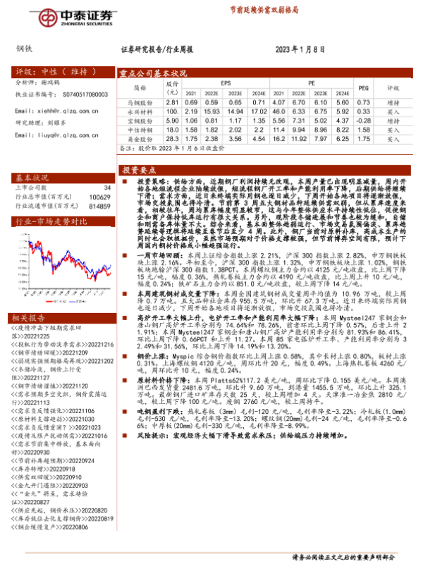 【中泰证券】【20230108】钢铁行业周报:节前延续供需双弱格局-14页