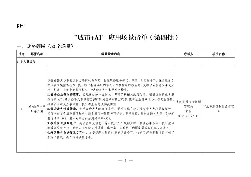 【市政务服务和数据管理局&市民政局&市人力资源保障局&市文化广电旅游体育局&市气象局&南山区政务服务和数据管理局&福田区企业服务中心&盐田区政务服务和数据管理局&坪山区政务服务和数据管理局&前海管理局&市妇女联合会&市公安局&市应急管理局&市卫健委&宝安区卫生健康局&市医保局&市规划和自然资源局&市生态环境局&市司法局&市发改委&市市场监管局&市财政局&市教育局&市档案馆&市总工会】【2024】“城市+AI”应用场景清单(第四批)-52页