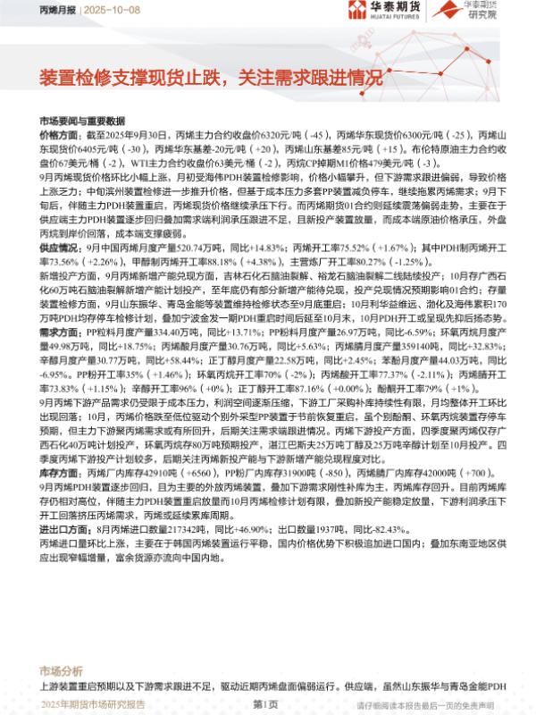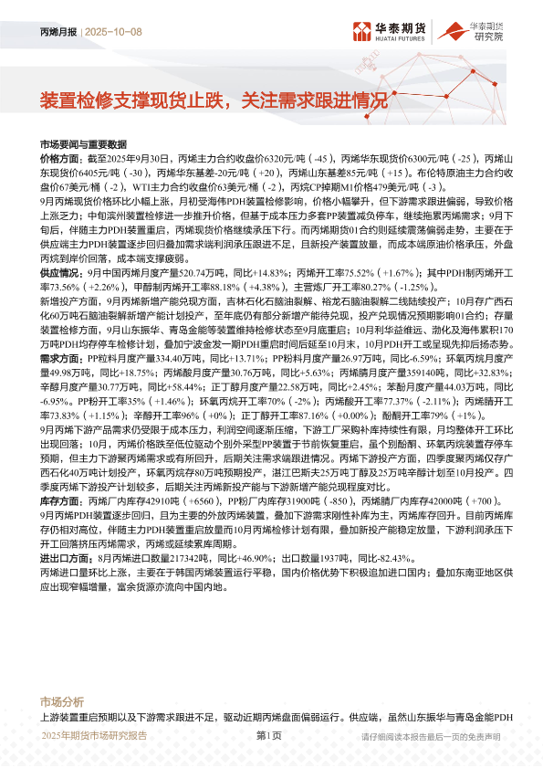 【华泰期货】【202510】丙烯月报 | 装置检修支撑现货止跌,关注需求跟进情况-16页