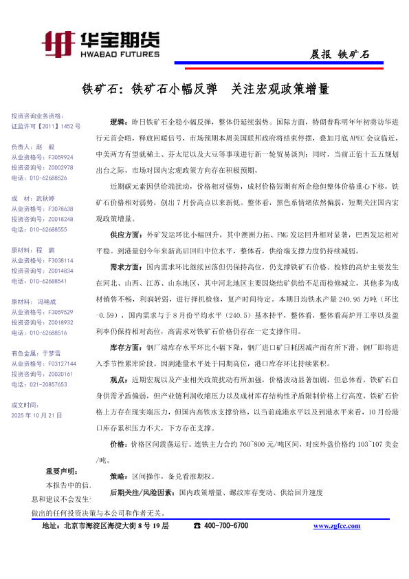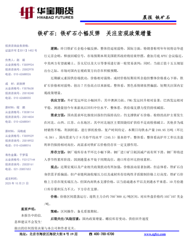 【华宝期货】【202510】铁矿石小幅反弹关注宏观政策增量-1页