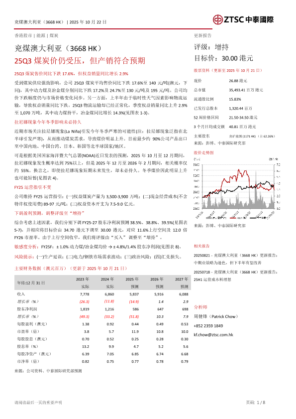 【中泰国际】【202510】25Q3煤炭价仍受压但产销符合预期-8页